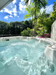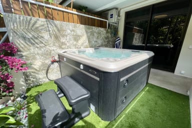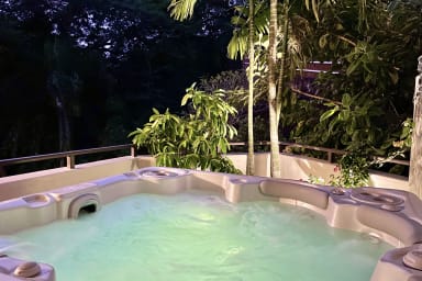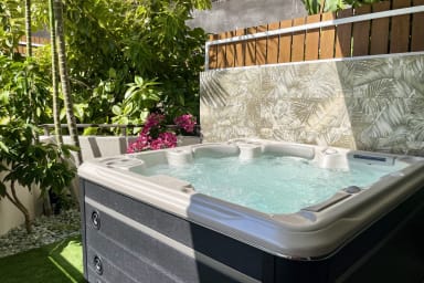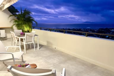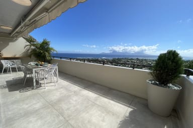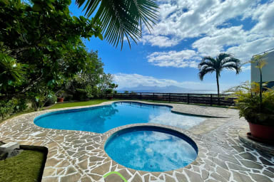 Bail mobilité - Une parenthèse d’exception à Punaauia : grande terrasse panoramique, jacuzzi privé dans la verdure, résidence calme et sécurisée avec piscine. Confort premium, fibre, clim, 2 parkings couverts.