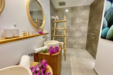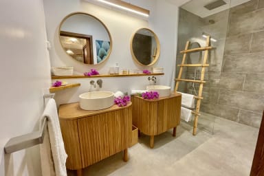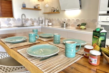 - Cuisine moderne entièrement équipée (cuisiner face à la lumière du lagon change tout)