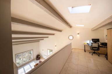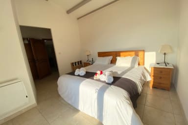A l'étage, un espace de travail composé de 2 bureaux, de deux écrans et d’une imprimante, idéal pour le télé-travail et une seconde chambre avec salle d'eau et WC privatifs.