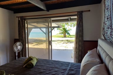 La Villa VAIROARII est situé sur une propriété privée en bord de mer avec sa plage de sable blanc. Elle comprend deux chambres climatisées et une mezzanine avec un grand lit supplémentaire. Vous profiterez du lever du soleil, de la baignade, du kayak dans ce lieu paisible. Vous disposez d'un grand jardin avec des arbres fruitiers, et places de parking. Un lieu idéal pour vos vacances en famille.